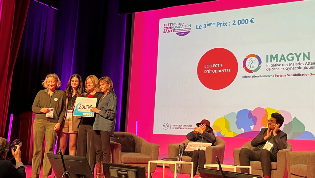 La remise des prix de la deuxième édition de la Bourse FNIM, récompensant les meilleurs projets d’information santé, imaginés par des étudiants pour soutenir une association de patients ou d’aidants, a eu lieu pendant la 32e édition du Festival de la Communication Santé, le 31 Mars 2023.