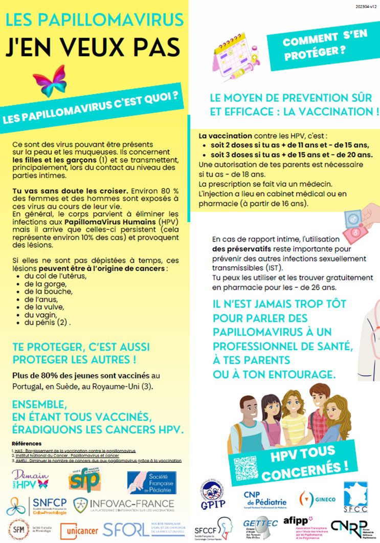 La création et la diffusion du flyer et les différentes actions de relais auprès de tous, ont contribué à accompagner, en amont (nous avons commencé dès avril 2023), les différentes campagnes des pouvoirs publics diffusées à la rentrée afin de favoriser l’adhésion des familles à cette vaccination essentielle pour protéger les générations futures de ces virus pouvant entraîner des cancers et d’autres maladies particulièrement invalidantes.