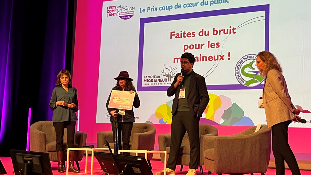 Le point culminant de cette aventure a été de monter sur scène pour parler de la migraine devant de très nombreux professionnels de la communication. Plusieurs personnes ont ensuite contacté l’Association pour les féliciter de leur engagement pour la migraine. Belle reconnaissance !